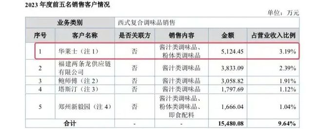 依靠庞大的经销商群体,2023年,百利食品线月,塔斯汀、华莱士均向百利食品采购酱汁产品,分别为0.65亿元、0.33亿元,成为前两大客户。
