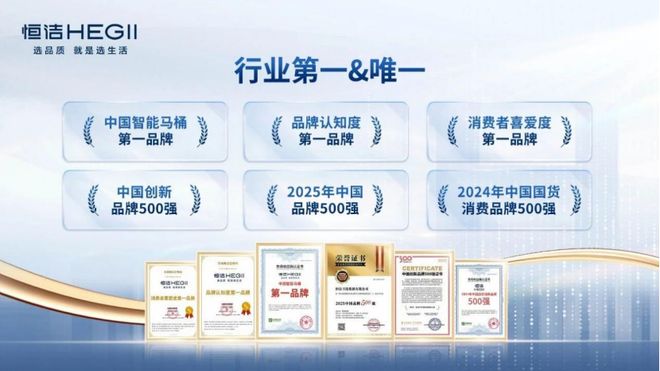 作为“中国消费者首选卫浴品牌”,恒洁屡次登顶中国品牌500浴类榜首,多次获评品牌认知度与喜爱度双第一,并连续得到权威机构“智能马桶第一品牌”的身份确认。这些品牌认知在“以旧换新”政策背景下,加速转化为消费行动。